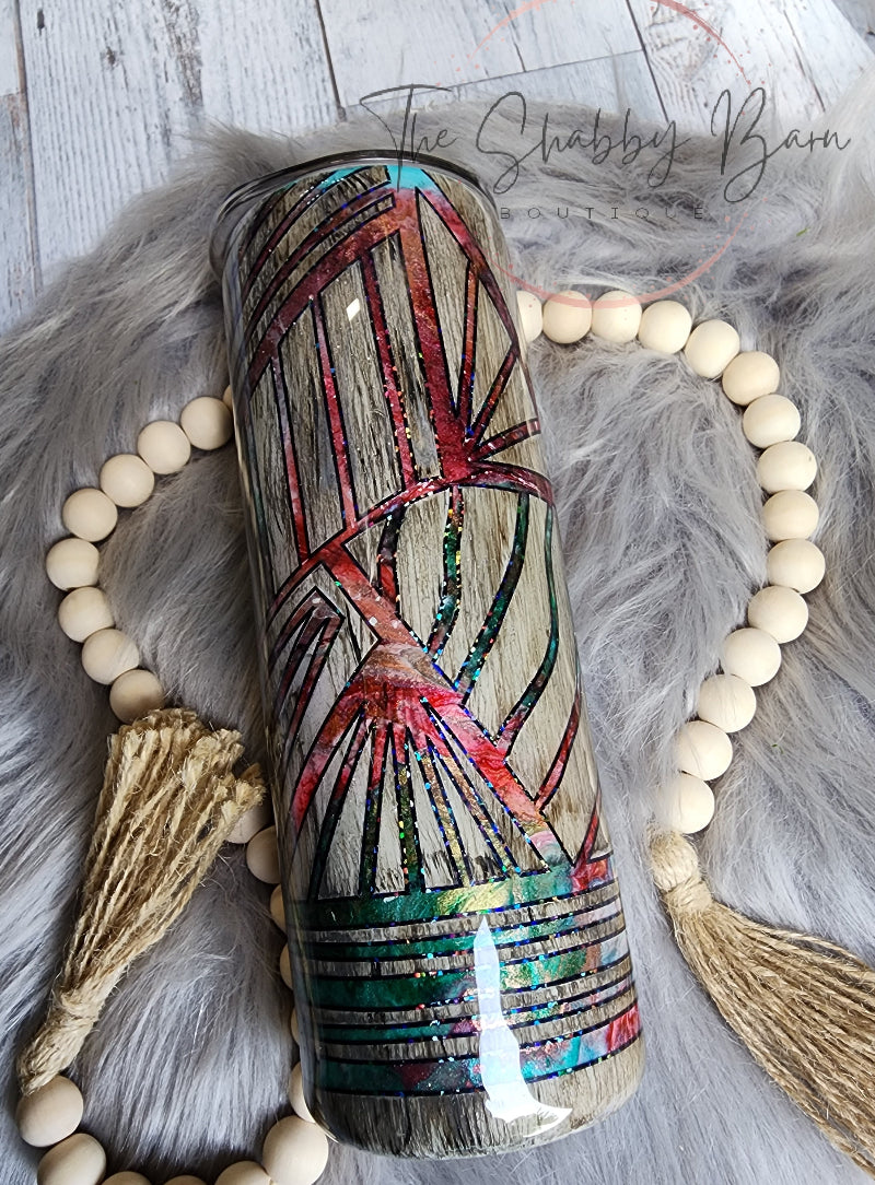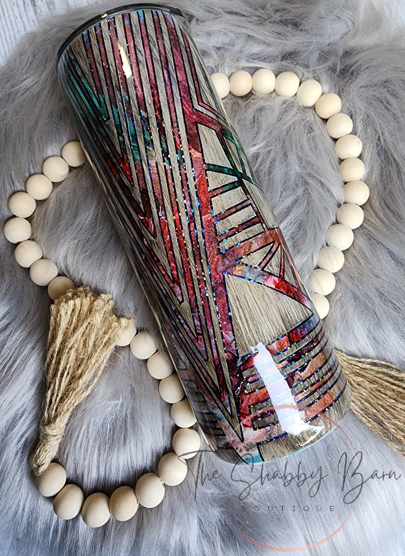Tiki Shattered Glass | Grey Tiki Wood Grain & Mica Swirl | 20oz Stainless Steel | Straw Included