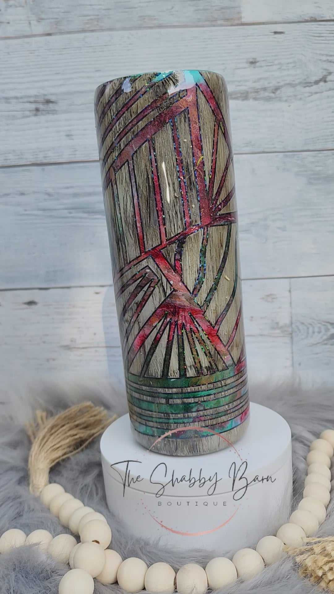 Capture island vibes with the Tiki Shattered Glass tumbler, featuring a stunning mica swirl base layered with a bold grey tiki wood grain design. This eye-catching piece combines tropical style with everyday functionality. Comes with a lid and reusable straw for effortless sipping wherever your adventures take you.