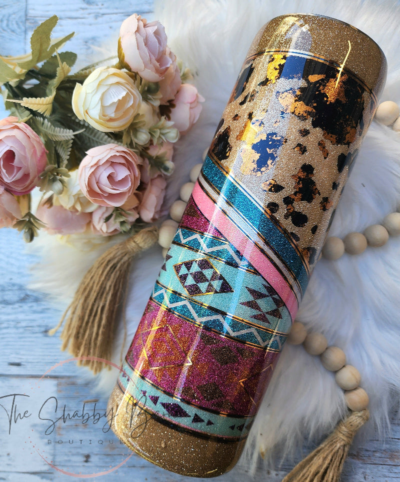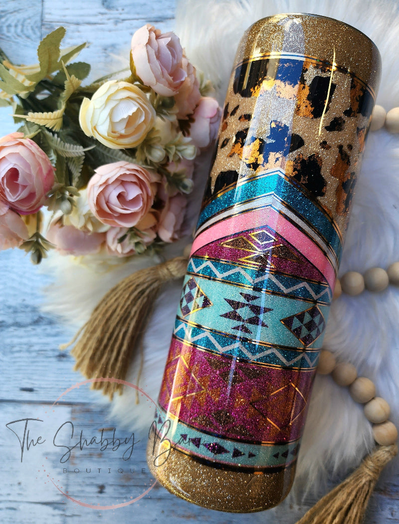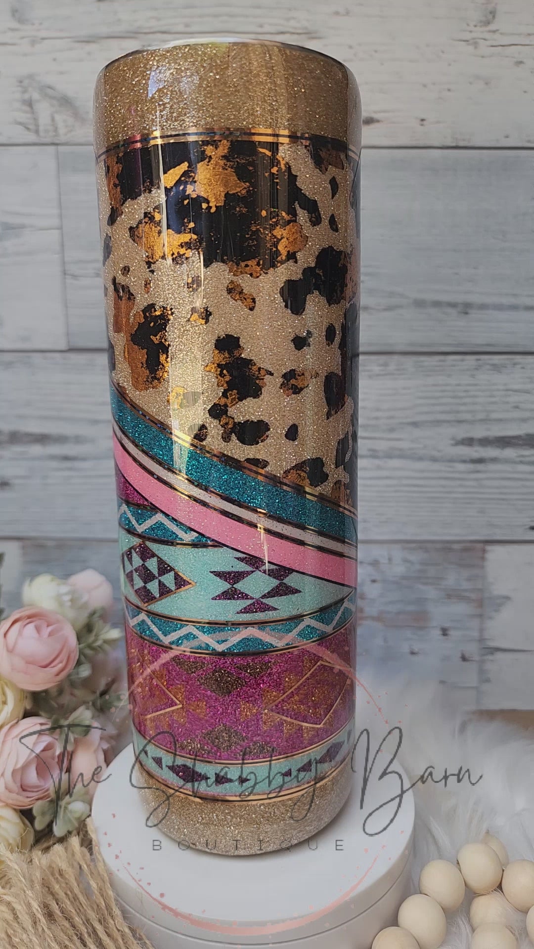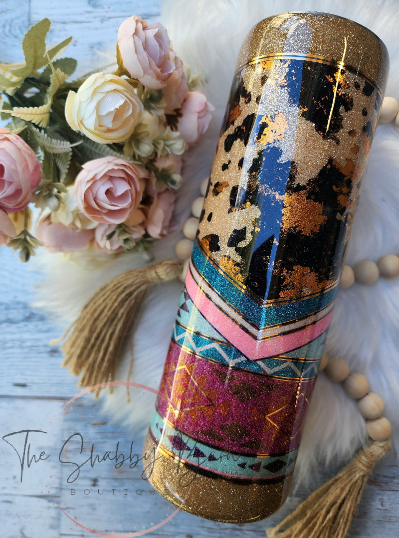 Foiled Cow Print | Southwestern Style | Mica Powder | 30oz Stainless Steel | Straw Included