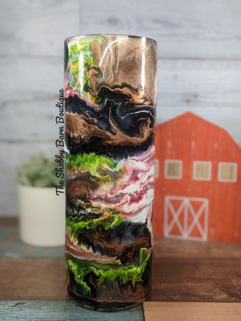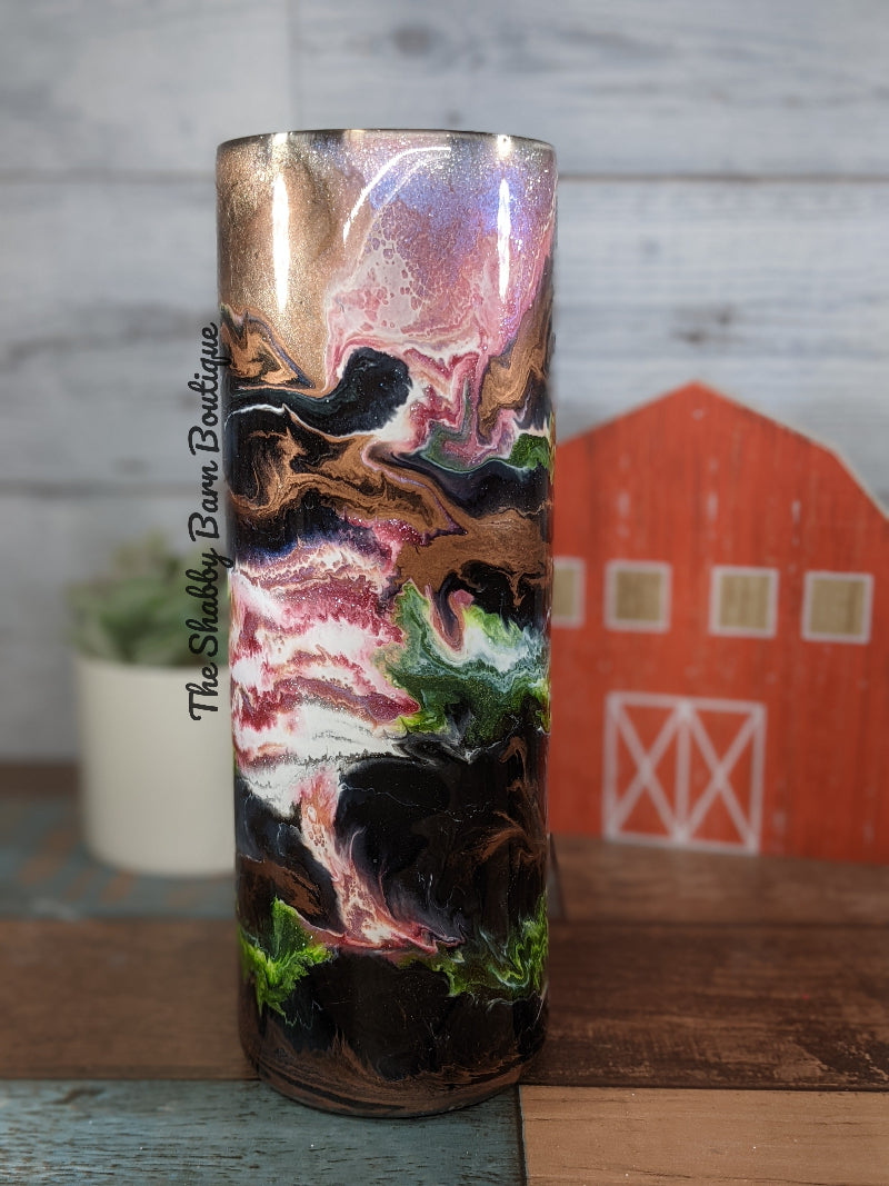 Alcohol Ink & Mica Swirl | Green, Gold, Black & Pink | 20oz Stainless Steel | Straw Included
