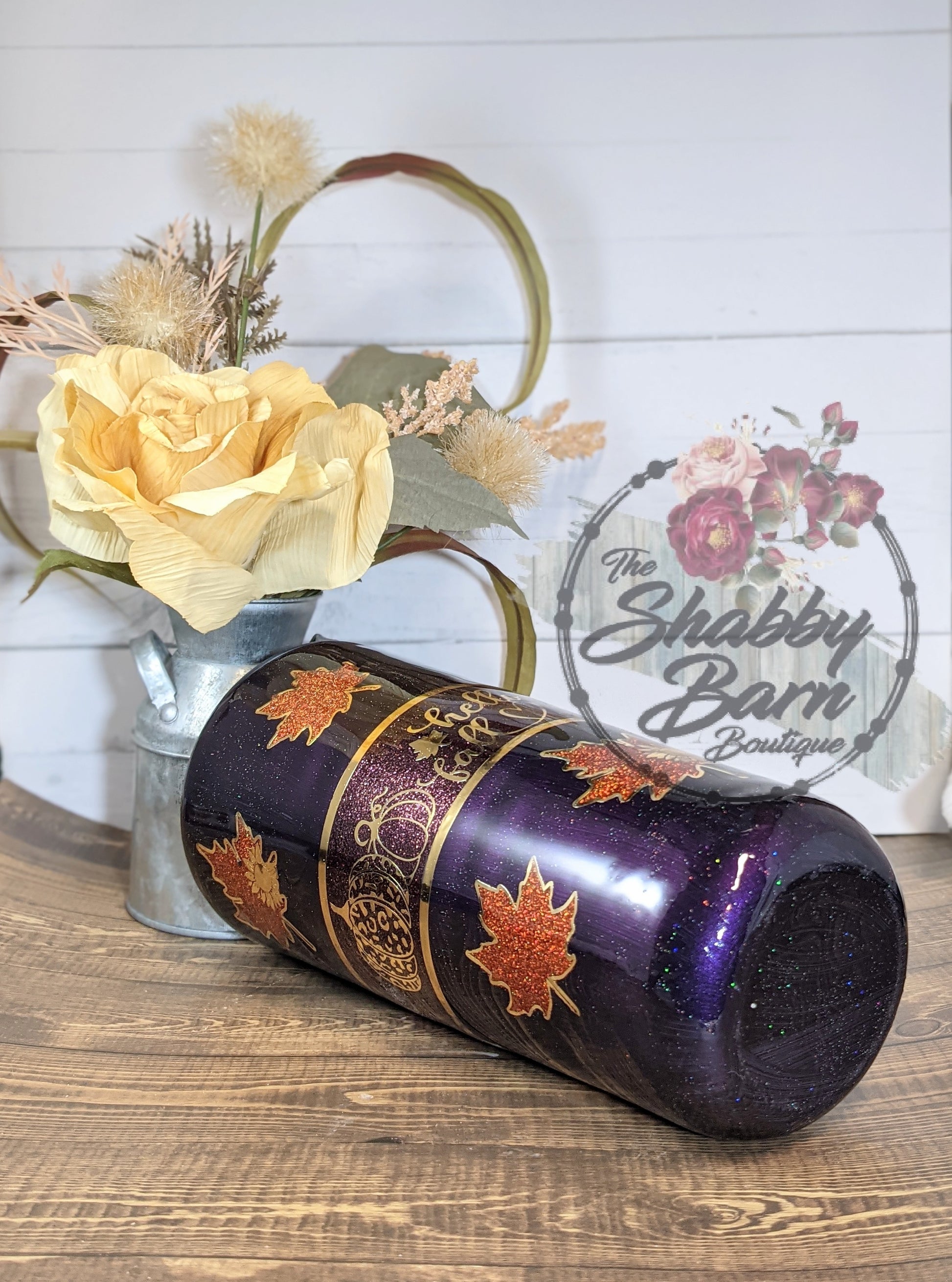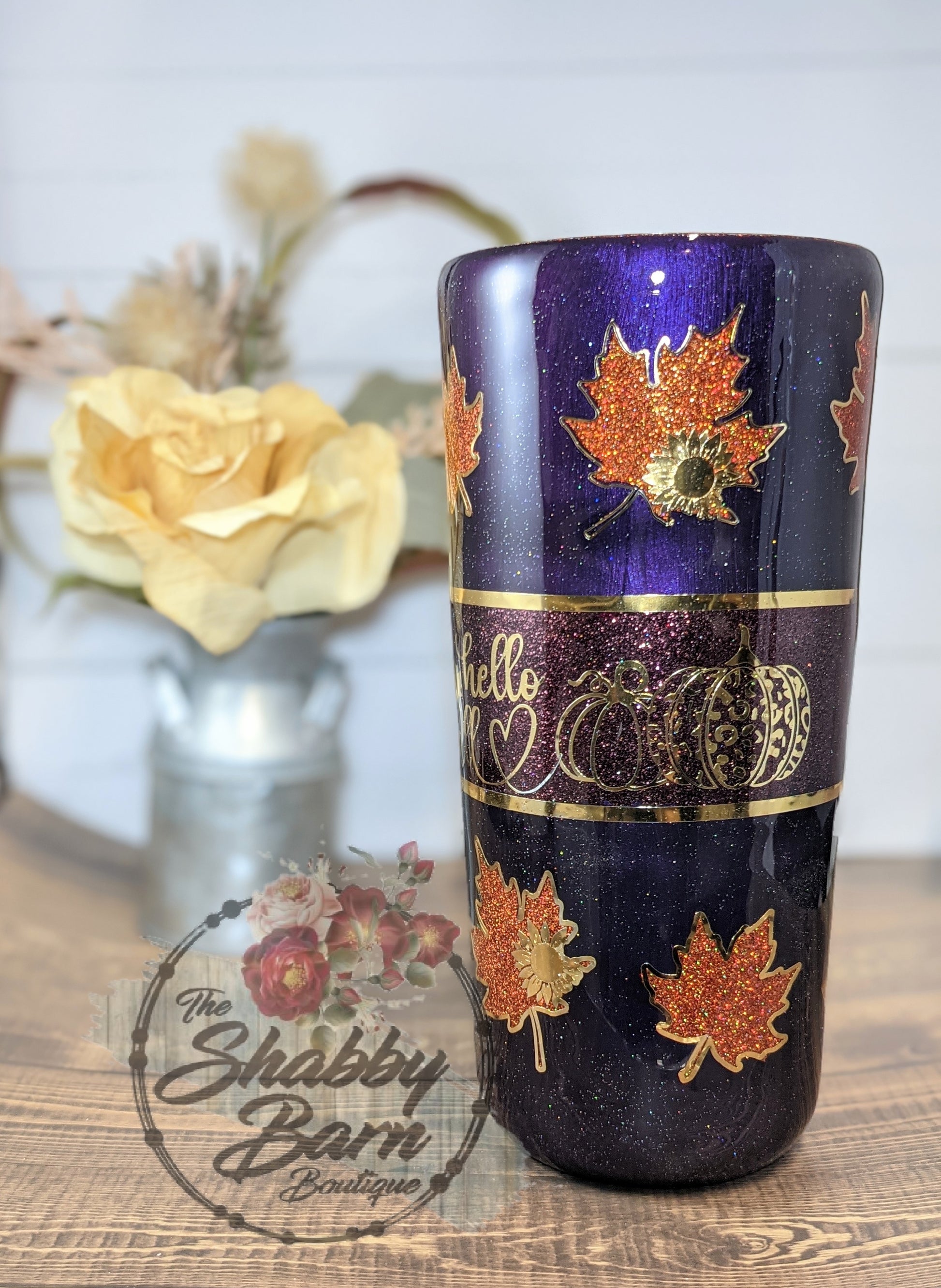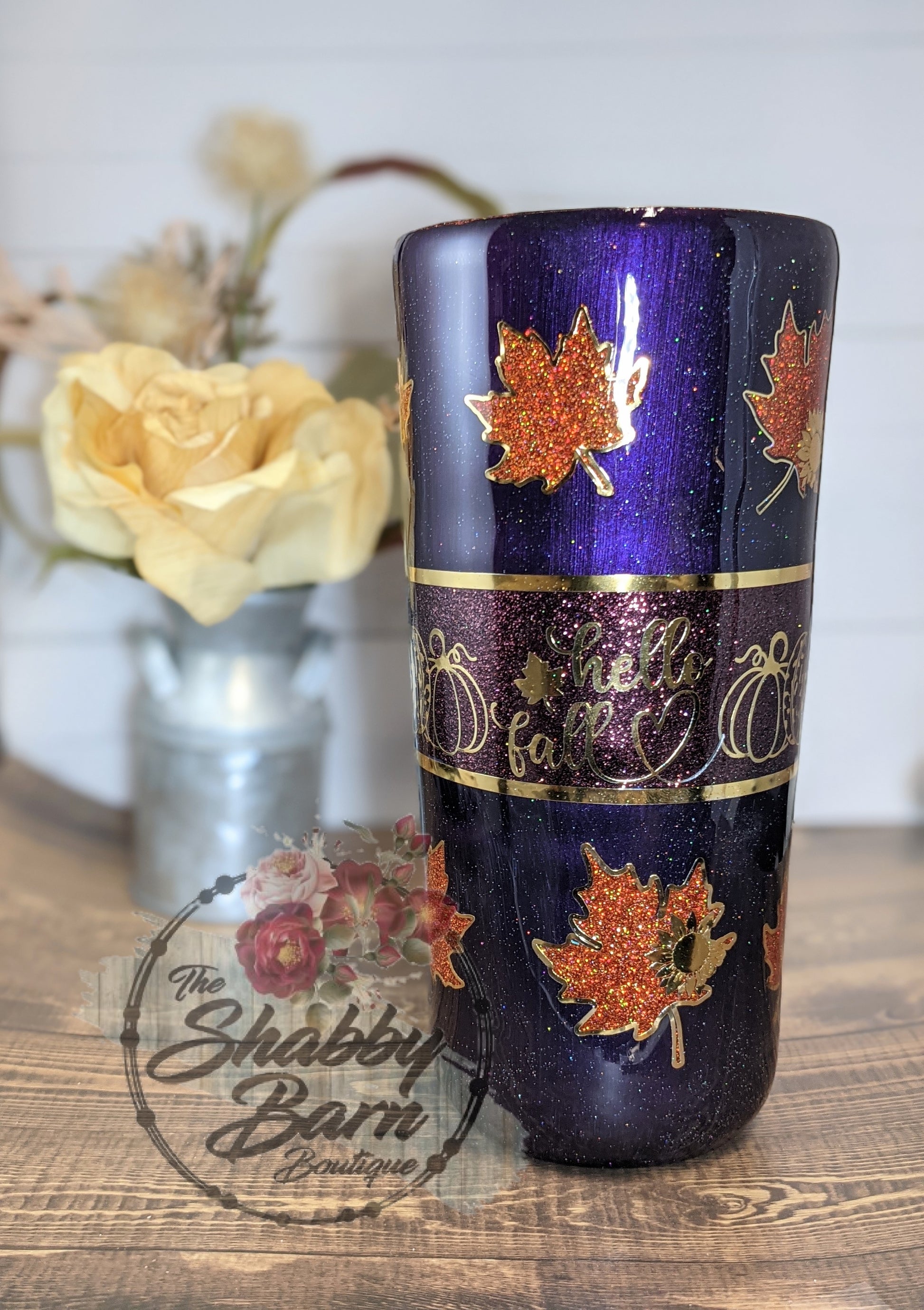 Stainless steel and vacuum insulates 20 oz custom tumbler.