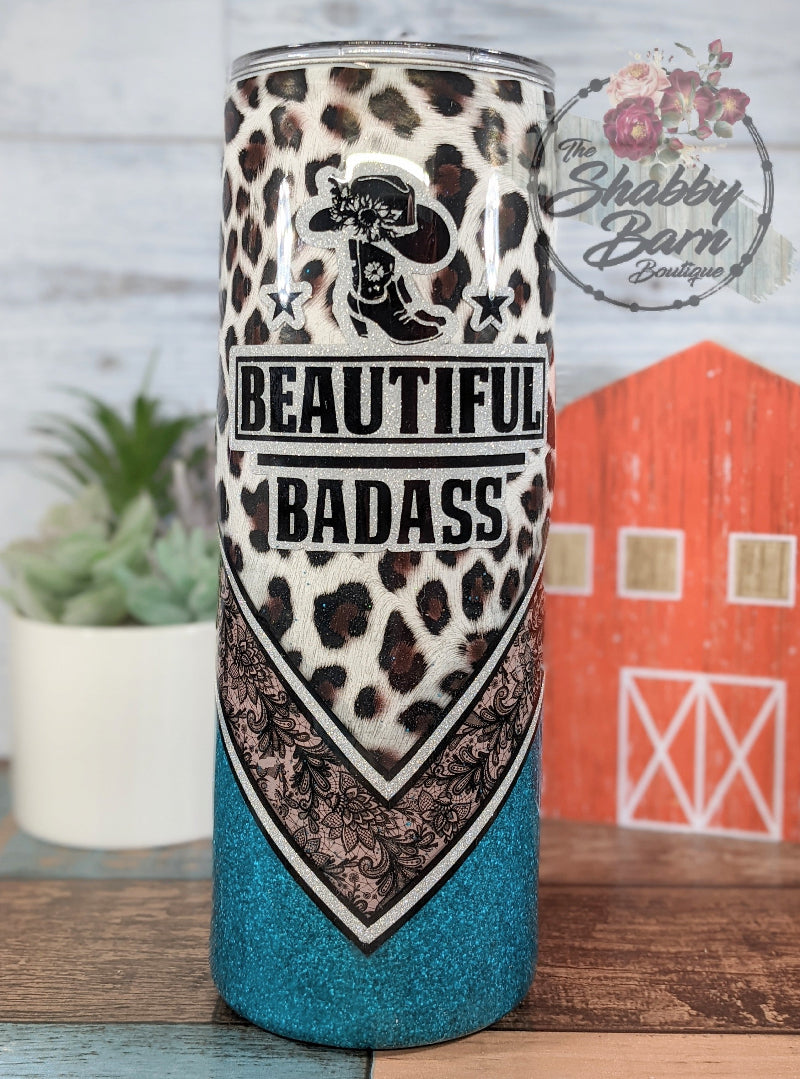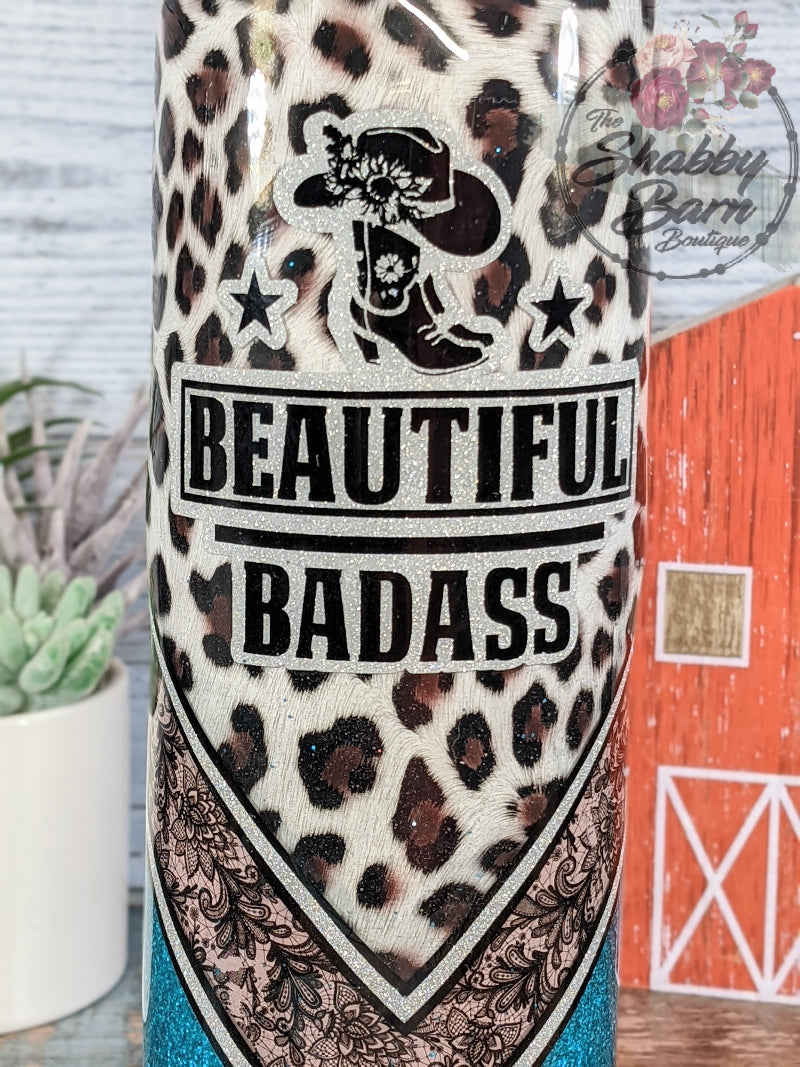 Show off your bold, beautiful, and badass self with this Leopard & Lace V-Split tumbler. Featuring a fierce leopard print paired with delicate lace in a trendy V-split design, this tumbler is the perfect combo of wild and classy. Whether you're on the go or out at the rodeo, sip in unapologetic style.