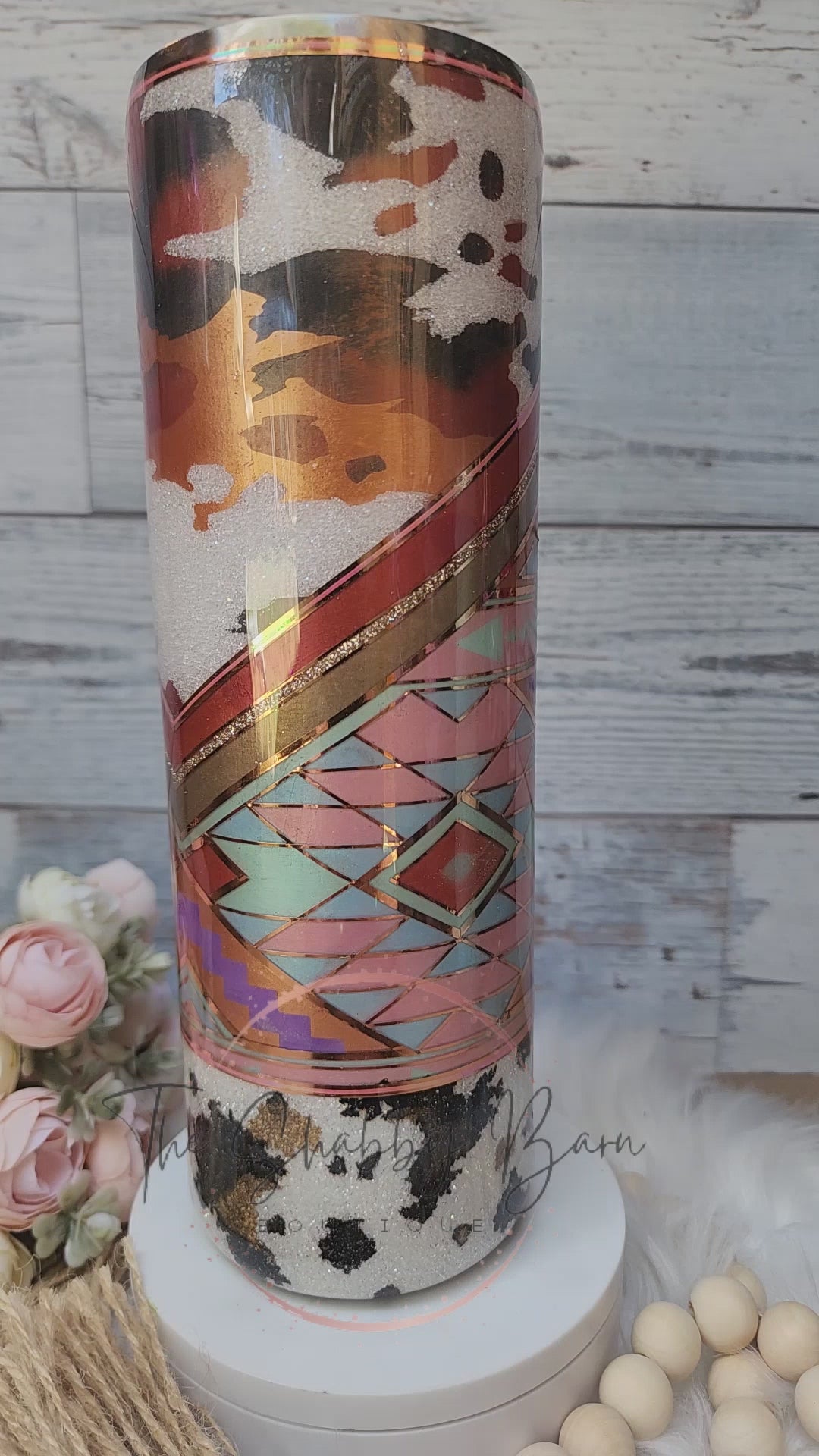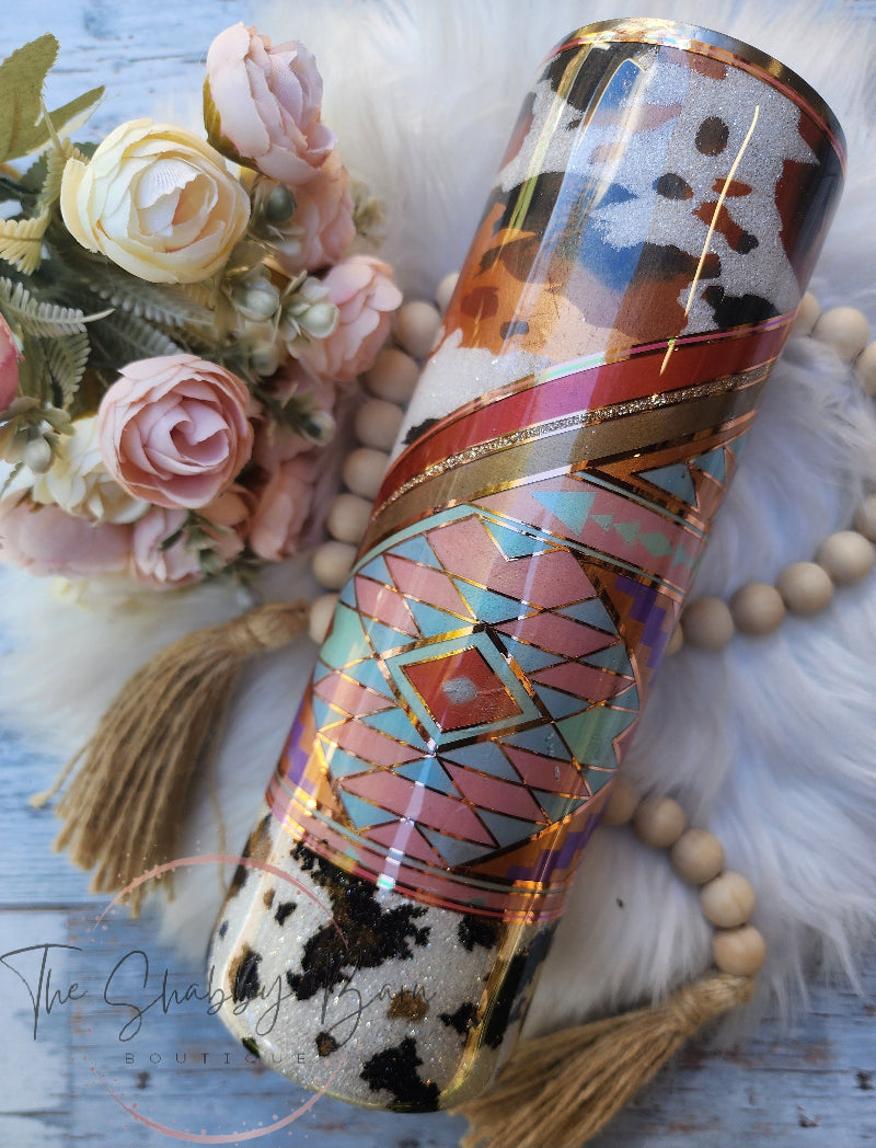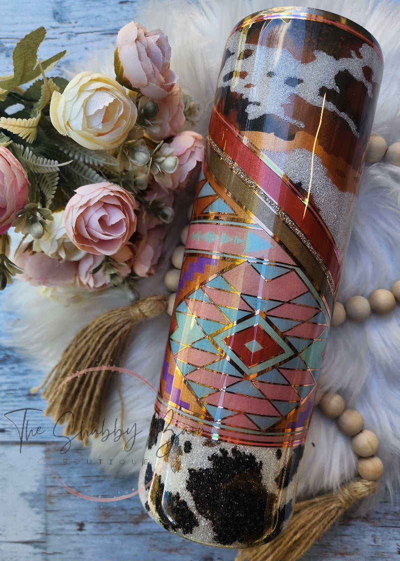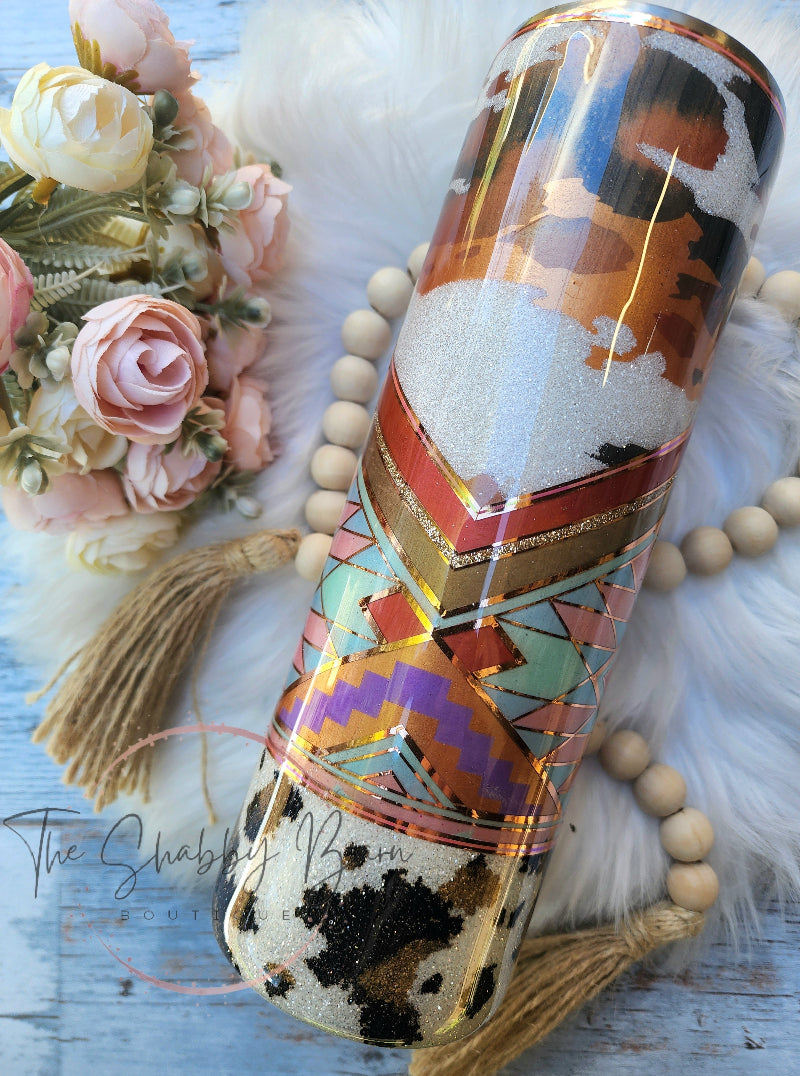 Cow Print Southwestern | Mica Powder & Glitter | 30oz Stainless Steel | Straw Included