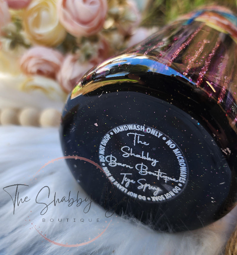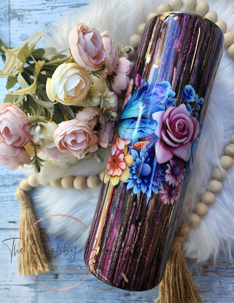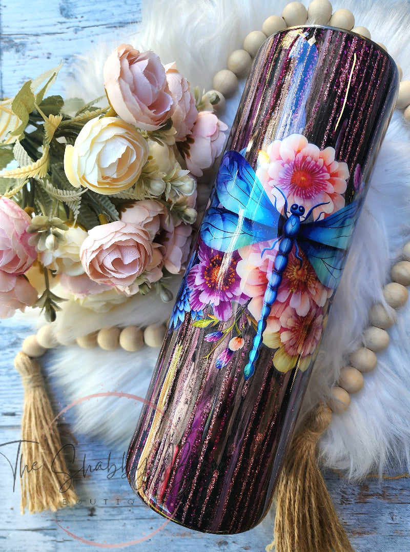 Channel the beauty of nature with our Dragonfly tumbler! Featuring delicate floral accents, shimmering glitter-lined details, and a graceful dragonfly motif, this tumbler brings garden vibes to your everyday sips. It's the perfect blend of serenity and sparkle.