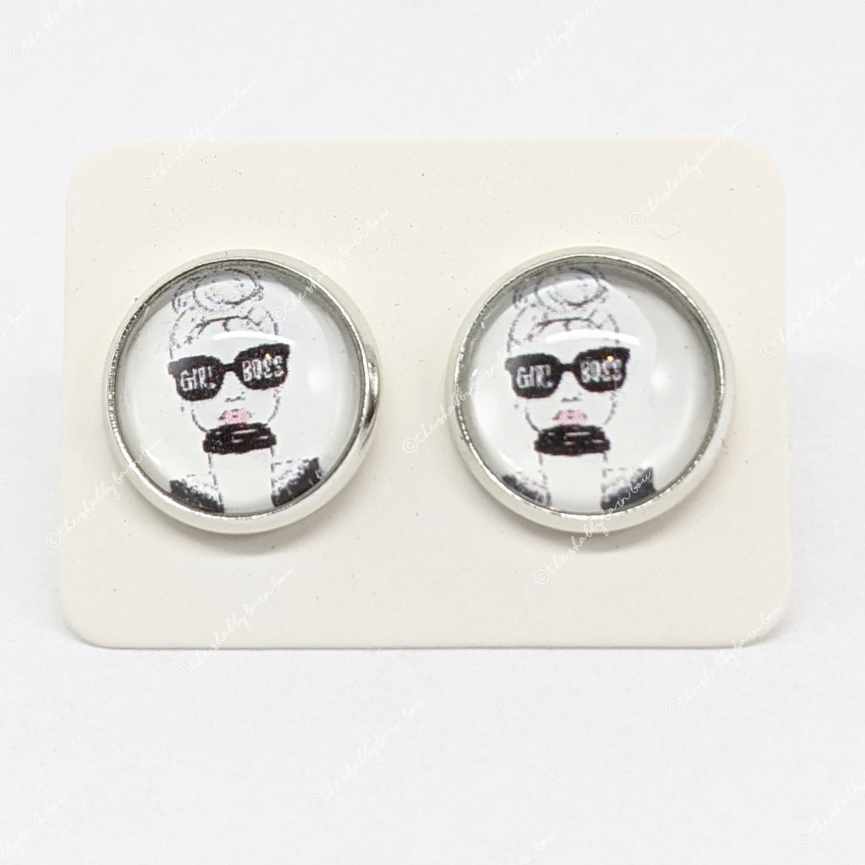 -Printed designs are $0.08 a piece. They come on a sheet of glossy photo paper. I can fit 100 images to a sheet. That is 50 pairs of earrings. These will be sized, printed and ready for you to glue your glass dome onto.