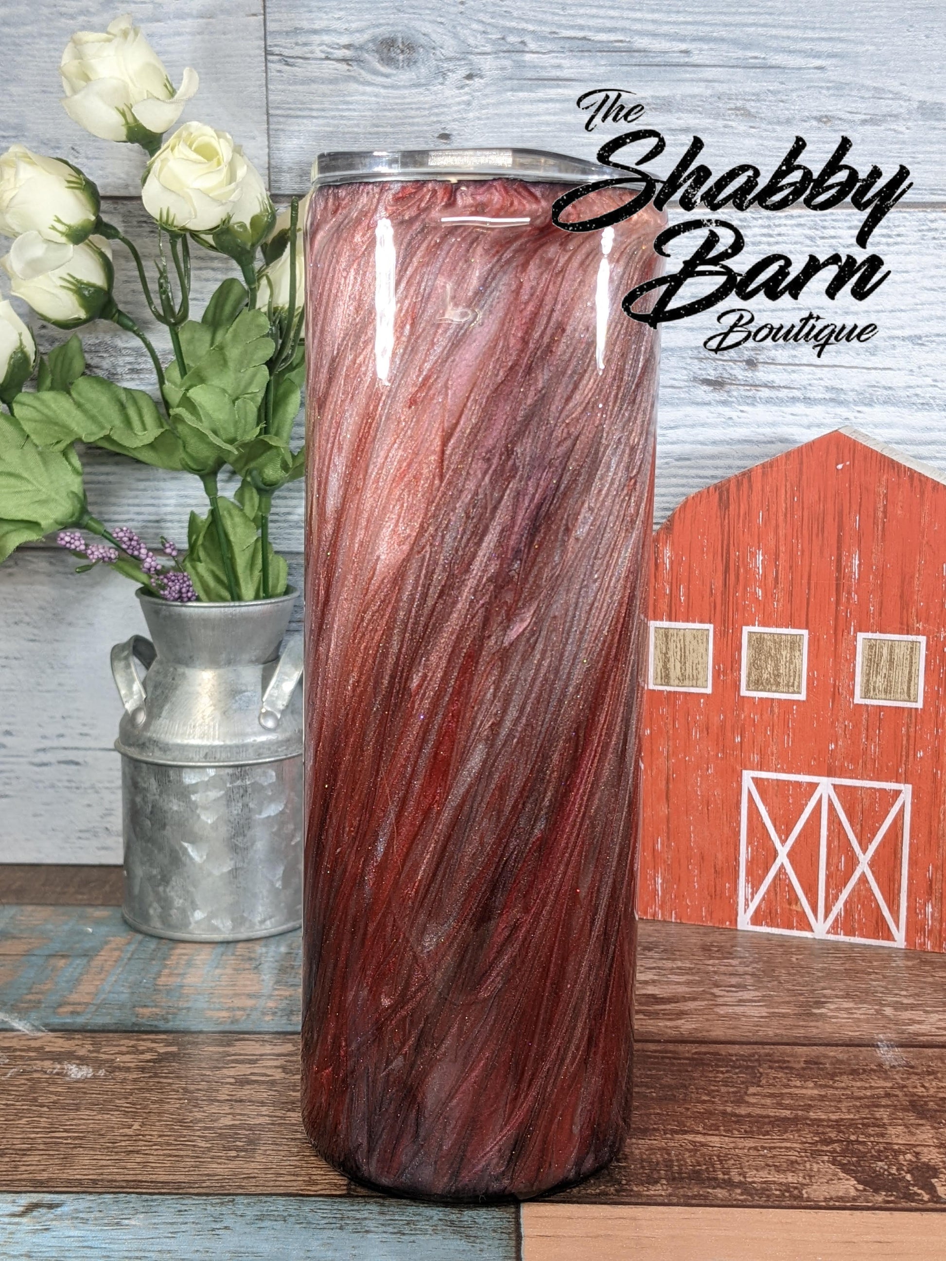Stainless steel 20 oz skinny tumbler. Comes with straw and lid. Can be made in any colors you choose. Comes with one decal, name or quote. You also have the option of rhinestones. Completely customizable however your heart desires.